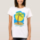 Une scène de plage de palmiers. Ce design semble vraiment efficace sur ce T-shirt féminin