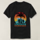 Design rétro de coucher de soleil sur South Beach en Floride avec des palmiers, de grosses vagues, des surfeurs, du surf.