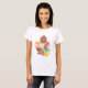 Un t-shirt illustré par un dessin d'une crème glacée à 3 boules ensoleillée avec des arrosages colorés. Un cône glacé avec des boules de chocolat, fraise et vanille. Un bol de glace néopolite avec une cerise sur le dessus. Des fraises et un ananas sont assis à côté des bols. L'été et doux.