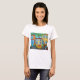 Scène colorée et romantique de peinture d'un beau village provençal et d'une table pour deux dans la cour avec une belle bouteille de vin rosé de Lisa Lorenz sur un T-shirt.