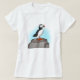 Art numérique tiré à la main Puffin debout sur un rocher avec arrière - plan bleu.