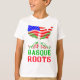 Carte des Etats-Unis avec drapeaux du Pays basque et américain mélangé avec le texte Roots basques en rouge et vert.
