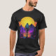 Un décor de paysage de montagne coloré de style rétro cool avec un randonneur au coucher du soleil.