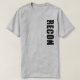 T-shirt reconditionné gris avec le texte noir de l'aile gauche du coffre.