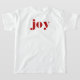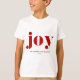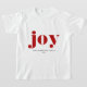 Ajoutez un accent festif à votre tenue de vacances avec ce t-shirt de Noël personnalisable. Il comporte le mot "JOY" en gras typographie rouge. Personnalisez en ajoutant vos détails. Cette chemise de vacances personnalisée est parfaite comme un cadeau de Noël personnalisé. Des éléments correspondants sont disponibles.