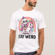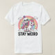 Un design amusant et surréaliste avec un squelette décalé chevauchant une licorne magique avec l'expression "Restez bizarre". Parfait pour ceux qui aiment l'humour, les créatures d'imaginaire et les styles d'art uniques. Idéal pour les t-shirts, autocollants, tasses et plus encore !