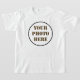 Avec ce design, votre photo apparaîtra en rond. Il suffit de supprimer le calque "votre photo ici" en cliquant sur le x, et assurez-vous que votre propre image téléchargée est SOUS le calque "photo ronde". Assurez-vous également d'agrandir votre image en cliquant sur + si nécessaire. Cela ne fonctionne qu'avec des vêtements blancs.