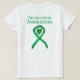 La conscience de la dépression utilise un ruban vert pour sa conscience de cause. L'art de la chemise présente un ruban vert de sensibilisation d'art cardiaque. Le t-shirt de sensibilisation note "Sensibilisation à la dépression". Il y a une grande image sur le dos de la chemise et une plus petite image sur le devant de la chemise. Le vêtement d'art de l'ange de la conscience verte peut être customisé de messages personnalisés pour faire des vêtements de cause pour les chemises de collecte de fonds, les chemises de promenade de l'équipe de groupe, des cadeaux de sensibilisation aux t-shirts, ou d'autres événements de cause spéciale occasions de marchandises pour aider à accroître la sensibilisation de la cause de traitement de la dépression en public pour l'aide de la société à créer de l'aide et de causer le changement.