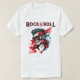 T-shirt cool moderne Rock n Roll avec un crâne rockstar stylisé couleur rouge, blanc et bleu et portant une coupe de cheveux mohawk
