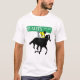 Cette conception montre la route et le type V de qualité prenant un galop sur l'avant de la chemise. Derrière eux est une plaque de rue qui indique la route de qualité.