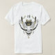 Les caractéristiques de conception ce une colombe de paix portant un casque samouraï de bataille avec le feuille de figue d'or ont enveloppé environ deux épées samouraïs. La guerre et la paix se luttent avec le symbole japonais de kanji pour des samouraïs au dessus de la conception. Il semble le meilleur sur les chemises colorées blanches ou plus foncées.