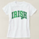 Ce t-shirt amusant St. Patrick's Day comprend le mot 'IRISH' dans une police rétro incurvée aux couleurs claires et vert foncé avec un shamrock coordonnateur.