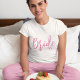 Ce design présente une écriture calligraphique rose de mariage de mariée, élégante simple moderne chic, des points minimalistes minimalistes amusants, cadeau de fête de douche de mariée pour enterrement de vie de jeune fille, idéal pour un événement de week-end d'enterrement de vie de jeune fille, pour elle dames féminines girly, typographie mignonne tendance stylée, minimaliste classique propre simpliste, simple nouveauté graphique souvenir, pour le t-shirt de la mariée