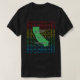 Le design du T-shirt disant "1849," "Californie" et "Stockton" est coloré en noir avec de l'encre rouge, jaune, verte, bleue, noire et blanche. Il est fait de 100% coton.