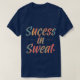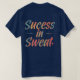 Le design du T-shirt comporte l'expression "Succès en sueur" dans une police audacieuse et multicolore qui courbe et coule sur le devant de la chemise. Les couleurs vives et la typographie dynamique créent un impact visuel frappant, soulignant le message que le succès est obtenu par un travail acharné et le dévouement.