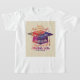 Une casquette de remise de diplômes inclinée dans un geste de fête, avec le slogan "Casquettes Off, Graduate !" dans une police classique et élégante. Le design utilise une palette de couleurs sophistiquée de noir, blanc et or.