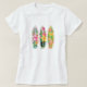 Des planches de surf à thème hawaïen ornent les t-shirts.