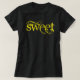 This tee says Sweet in bright yellow grungy lettering.