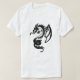 dessin décoratif à l'encre noire d'un dragon étalant ses ailes en tatouage tribal sur un t-shirt.