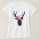 Un t-shirt à tête de cerf noir à lignes géométriques et portant une couronne de fleurs roses. Design rustique et tendance.