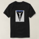 La chemise noire avec le chiffre masculin blanc a tendu dans une triangle noire, THÉRAPEUTE de MASSAGE dans des casquettes bleus dactylographient
