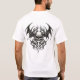 A powerful and highly detailed symmetrical tribal emblem featuring a central human skull. The skull is framed by large, flared bat wings with a weathered, obsidian stone texture. Intricate, flowing tribal linework creates a complex base below the skull, featuring sharp, thorn-like points and curved geometric shapes.