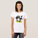 Une adorable vache noire et blanche avec une fleur en bouche. Ce design semble vraiment efficace sur ce T-shirt féminin