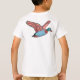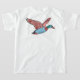 Bold turquoise body with coral wings and teal accents; a retro inked flying duck, ideal for kidswear and nature-inspired apparel.