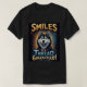 Bright, playful illustrated husky head with a cheerful expression, surrounded by splashes of color and bold lettering that reads 'Smiles Per Thread Guaranteed'. Perfect for positive, energetic posters, gifts, or marketing materials.