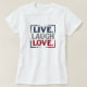 Ce design chic de t-shirt propose "Live". Rire. Love." dans des lettres élégantes et désespérantes, mélangeant des couleurs vives et une texture robuste pour un look inspirant. Parfait pour ceux qui aiment la positivité tout en embrassant une esthétique minimaliste.