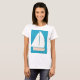 Ce T-shirt blanc est conçu avec ma représentation d'un voilier blanc sur un arrière - plan turquoise.