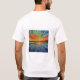 "Wade into Warmth" présente une scène sereine au coucher du soleil avec un personnage qui s'avance dans des vagues douces. Le design reflète la tranquillité des teintes chaudes et dorées qui se mêlent aux bleus cool de l'eau, évoquant un sentiment de calme et de détente.
