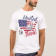 This design has as its center the map of the United States made with the colors and stripes of the flag and in the center a bald eagle head. The famous phrase "we stand united" completes the design. It belongs to the "Proud to be an American" collection.