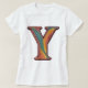Ce design présente la lettre "Y" dans un design élégant et artistique, idéal pour un imprimé de t-shirt dynamique et unique. Le "Y" est composé d'une série de lignes ondulées et colorées qui traversent sans heurts sa structure, créant un sentiment de mouvement et de dynamisme. La palette de couleurs comprend des oranges et des jaunes chauds, ainsi que des bleus et des verts glacières, tous entourés d'un contour gras qui donne à la lettre un aspect tridimensionnel distinct. Les motifs complexes dans le "Y" ajoutent de la profondeur et de la texture, ce qui en fait une pièce centrale attrayante pour n'importe quel vêtement.