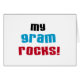 Mes T-shirts Gram Rocks, cartes, autocollants, sacs fourre-tout, magnets, boutons et autres articles avec un design de texte noir, bleu et rouge. Ces produits My Gram Rocks sont une excellente façon de montrer votre amour pour votre gramme spécial!