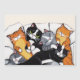 Magnetic card featuring a painting of 6 cute kittens enjoying a sleepover. 2 black and white tuxedo cats, and 4 tabby cats (2 grey, 2 ginger) snoozing away. Except for one who is wide awake. Art by Lisa Marie Robinson.