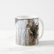 Cette tasse présente un chat tabby haut dans un arbre arpentant sa propriété