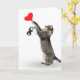 Chatte de tabby gris avec ballon de coeur rouge pour 8ème anniversaire sur arrière - plan blanc. La couleur Arrière - plan peut être modifiée