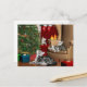 Family of grey or silver tabby kitty cats gathers around the Christmas tree and fireplace for the Christmas holidays cat lovers greeting card