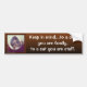 Cute cat lover bumper sticker design features a close up photograph of a grey Tabby hanging out of a kitty hut. Click the "Customize it!" button to change text style, colour, size or change background colour.
