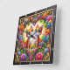 This beautiful square wall clock features a vibrant digital illustration of two ginger tabby kittens sitting together within a heart-shaped frame of flowers. The kittens have large, expressive green eyes and are surrounded by a lush garden of purple, pink, and orange daisies. Whimsical blue butterflies and small floating hearts accent the scene, set against a soft, glowing background. The artwork is encased in a modern black wood-textured frame with bold white numeric markers for easy timekeeping. This functional home accessory is a perfect decorative piece for cat lovers and holiday enthusiasts alike. Its high-contrast detail and romantic theme make it an ideal gift for Valentine Day, anniversaries, or as a cheerful accent in a nursery or living space.