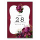 Cartes de numéro de table vintage marsala (bordeaux) et or shabby-chic fleurs mariage avec accents de noir et prune.