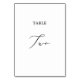 Ce délicat tableau de calligraphie noire à deux numéros de table est parfait pour un mariage moderne. Le design minimaliste romantique présente une belle et élégante typographie noire sur un arrière - plan blanc au look épuré et sobre. La carte s'imprime à l'avant et à l'arrière (double face). Les autres numéros de tableau de la collection sont vendus séparément.