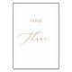 Cette délicate calligraphie dorée table trois numéro de table est parfaite pour un mariage moderne. Le design minimaliste romantique présente une belle et élégante typographie de champagne jaune doré sur un arrière - plan blanc au look épuré et simple. La carte s'imprime à l'avant et à l'arrière (double face). Les autres numéros de tableau de la collection sont vendus séparément.