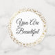 These table confetti pieces are a mix of Black and White double sided with well-wishing comments for your pageant's titleholders. Graphics of petite Golden-coloured stars grace both front and back around the edges. Simple, yet elegant design. Sample texts are "Miss Valley Hills Scholarship Pageant 2019", "you are beautiful", "talented", "intelligent, "poised", "charming". Customize this item or buy as designed.