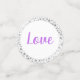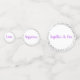 These table confetti pieces are a mix of Orchid Pinks and White and double sided with well-wishing comments for the bride and groom. Graphics of petite grey coloured stars grace both front and back around the edges. Simple, yet elegant design. Sample texts are "Jason & Emily", "congrats", "Happiness"."Together As One", "Love", "Forever". Customize this item or buy as designed.