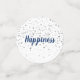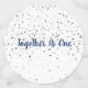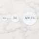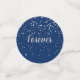 These table confetti pieces are a mix of Deep Blue and White double sided with well-wishing comments for the bride and groom. Graphics of petite Silver-Grey coloured stars grace both front and back. Customize this item. Sample texts are "Jason & Emily", "Congrats", "Happiness", "Together As One", "Love", "Forever".