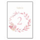 Table couronne de fleurs rose poussiéreuse numéro de tab