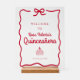 Propres, modernes et sans effort, ces panneaux de table Quinceañera présentent une typographie rouge audacieuse, un arrière - plan translucide et un arc dessiné à la main et une bordure pour un look coquette branché. Il est parfait pour un client d’honneur avant-gardiste qui apprécie la simplicité. Que ce soit pour un dîner élégant ou une fête amusante, ce design minimaliste est facile à personnaliser avec vos détails d'événement. Une décoration chic pour accueillir amis et famille à votre événement d'anniversaire.