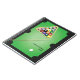 Un carnet personnalisé qui a la conception d'une table de billard et d'une baguette.